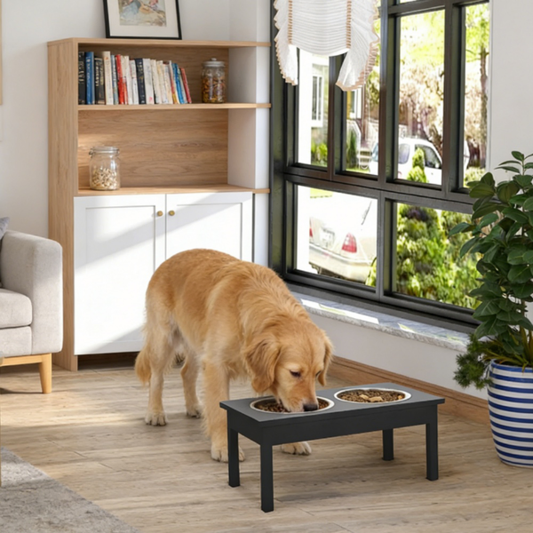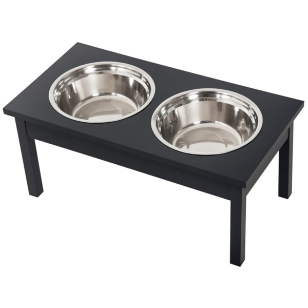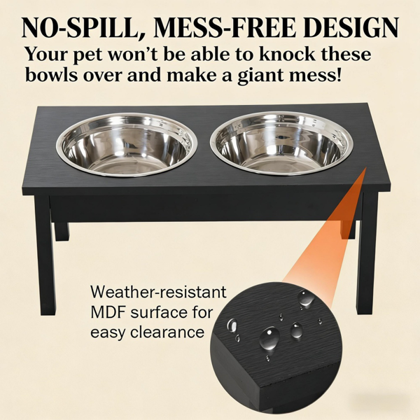 - Material: MDF Frame, Stainless Steel Bowls